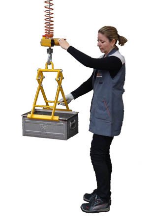 The Handy chain model is ideal for cost-effective transport of small loads such as crates or containers. Higher hoisting speed and creep speed as standard allow precise load positioning. Since the control unit is fixed to the load suspension device, loads can easily be transported with one hand only. Various suspension attachments can be fitted.