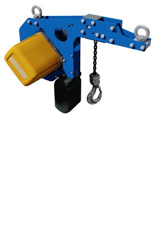 These electric chain hoists are designed for low ceilings. The chain is diverted through an additional block to increase lifting height. For large bulky loads the block spacing can be extended.